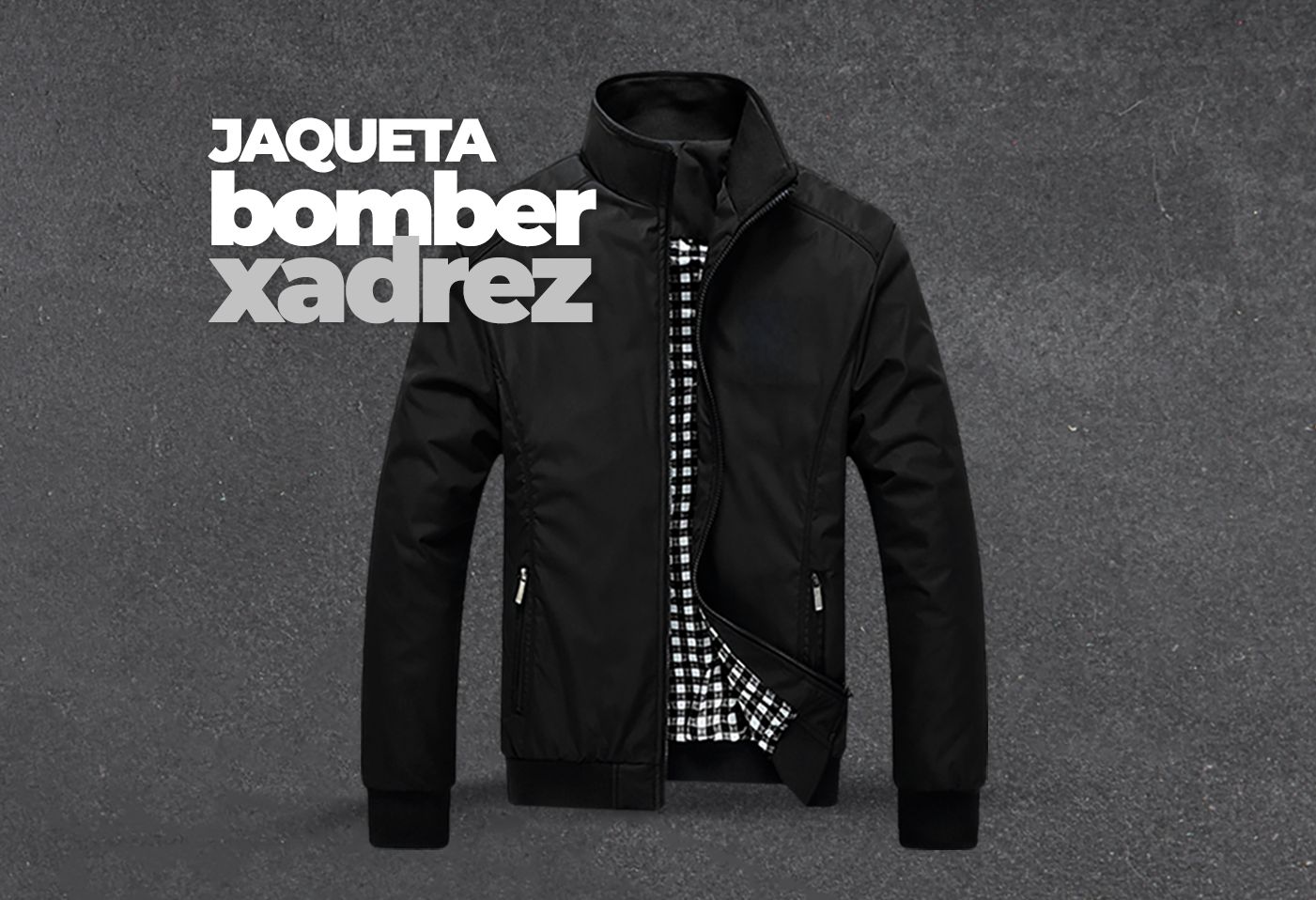 PromoçãoJaqueta Bomber com fundo Xadrez